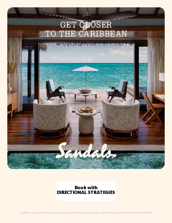 Directional Strategies Co-owner Sandra Smith accepts the agency's 12th consecutive Best of the Best Award from Sandals founder and Chairman Gordon "Butch" Stewart and Sandals CEO Adam Stewart.
